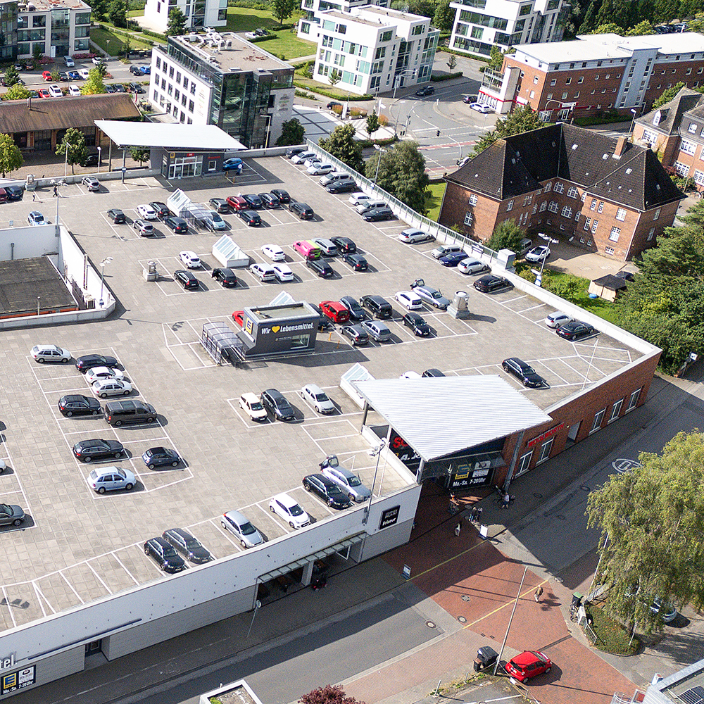 Mit dem Auto über den Schwarzen Weg direkt auf unser Parkdeck mit 220 Parkplätzen.
